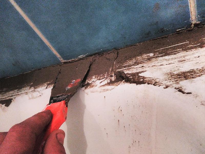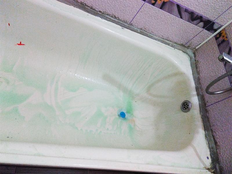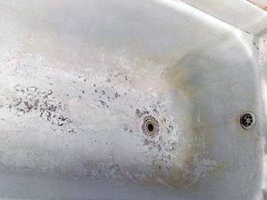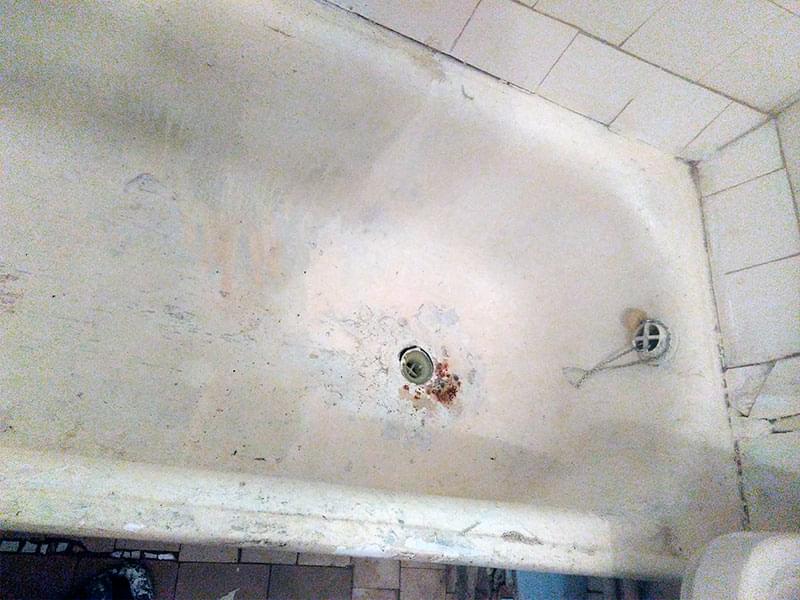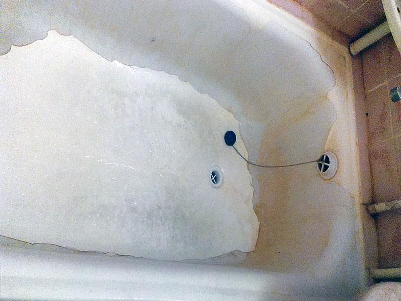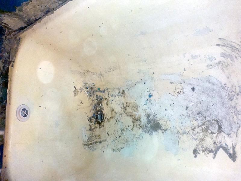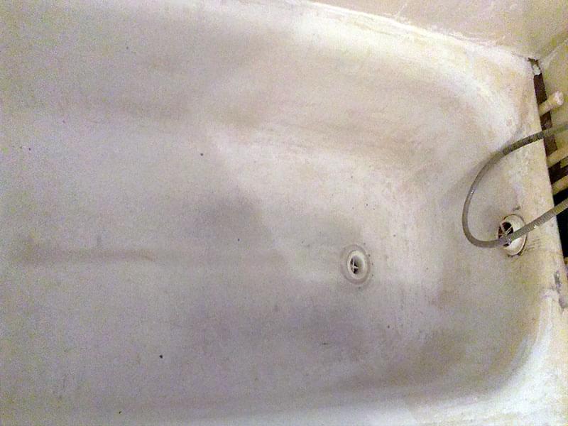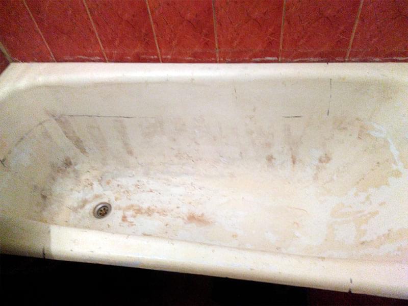 Если ванна реставрировалась ранее, старое покрытие нужно ПЕРЕ ЗАЧИСТИТЬ. Иначе новый слой повторит все существующие неровности, а в будущем может начать отслаиваться. Удаление эмалевого слоя занимает от 1 до 3-х часов. Работы пыльная — советуем заранее закрыть все поверхности в ванне.
